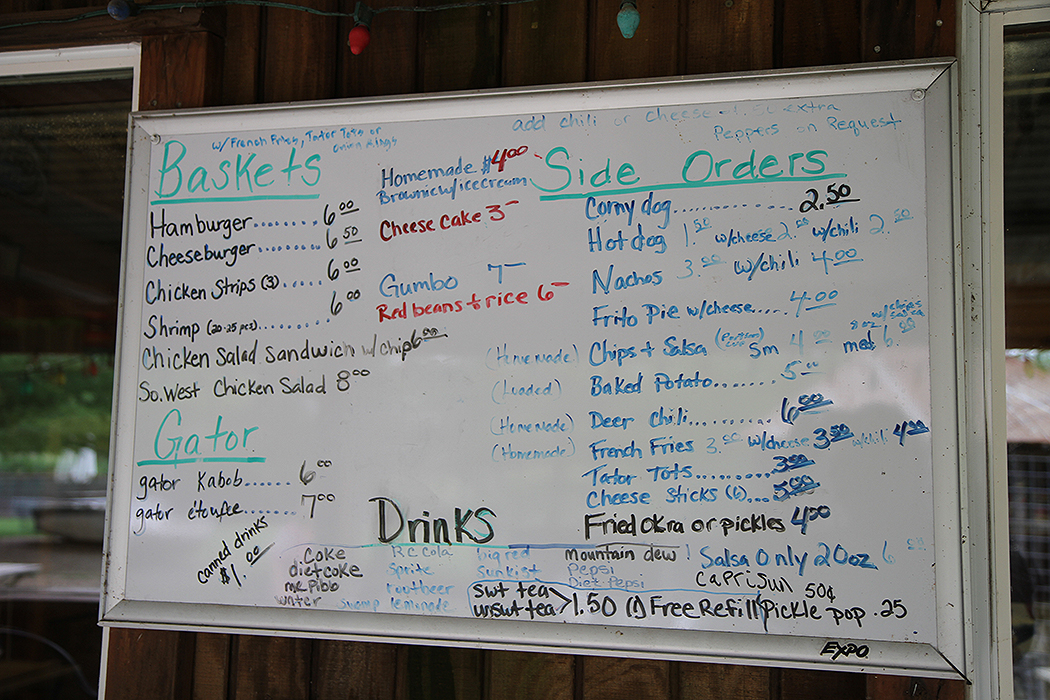 If watching that makes you work up an appetite then the Park has a way to turn the tables and put you in the role of predator by offering a small selection of dishes with alligator meat at the Park's Grill (bottom left):
